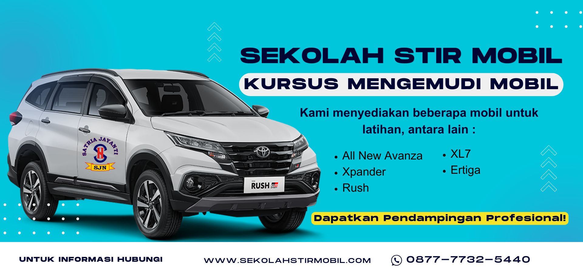 Satria Jayanti adalah lembaga kursus mengemudi mobil yang berkomitmen untuk mencetak pengemudi-pengemudi yang terampil, percaya diri, dan bertanggung jawab di jalan raya. Berdiri dengan semangat pelayanan yang profesional, kami hadir untuk membantu masyarakat belajar mengemudi dengan aman dan nyaman, baik bagi pemula maupun yang ingin memperdalam kemampuan berkendara.
